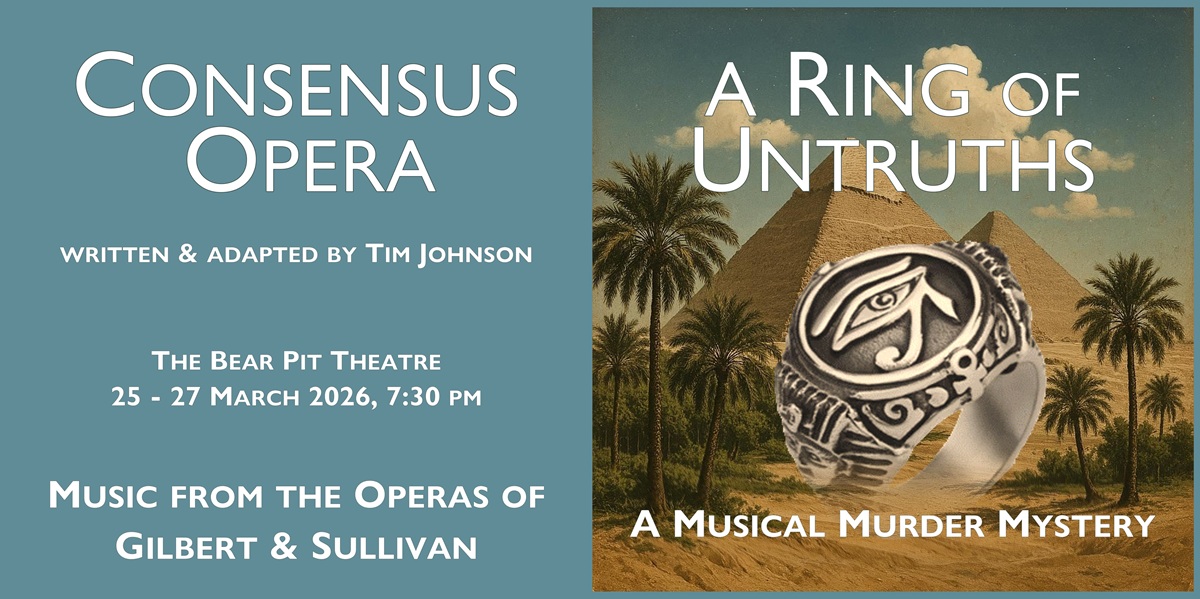 A Ring of Untruths is a new murder mystery comedy, written by Tim Johnson and set to the glorious music of Gilbert and Sullivan’s operettas. Performances will be from 25 to 28 March, 2026.